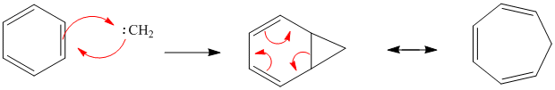 Carbenes- reaction with benzene to form cycloheptatriene