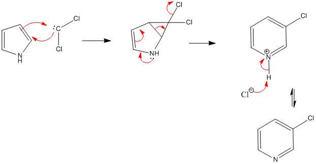 Carbenes- reaction with pyrrole to form pyridine