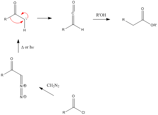 Carbenes- Wolff-rearrangement- add an extra CH