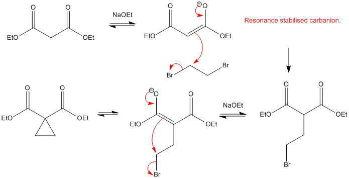 Cyclisation- carbanion based - diethyl malonate to form small rings